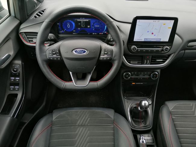 - Volante de piel multifunción con COSTURAS ROJAS.